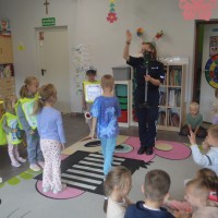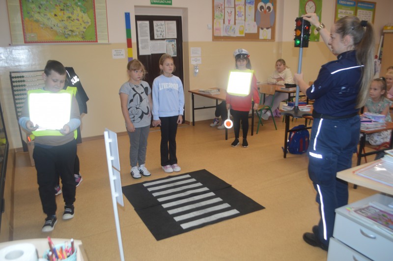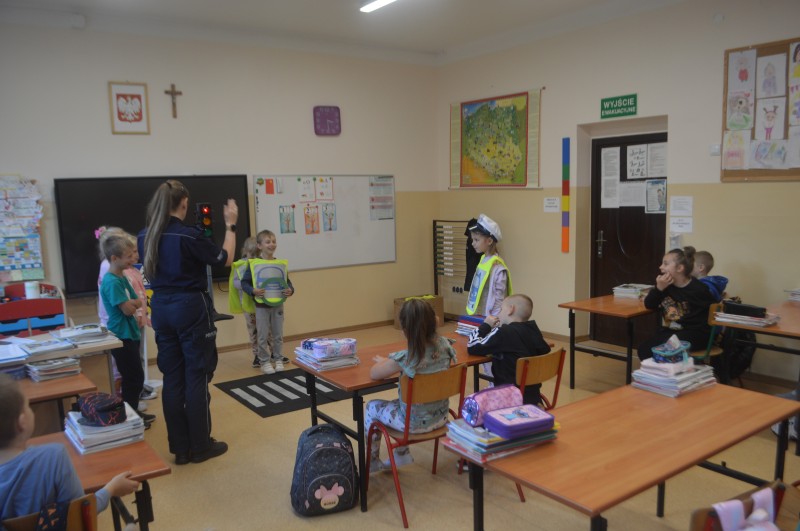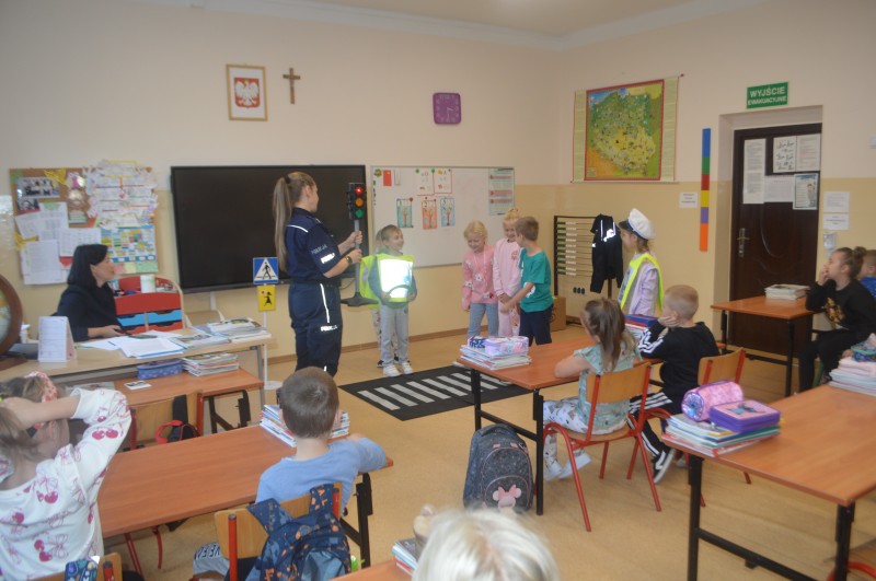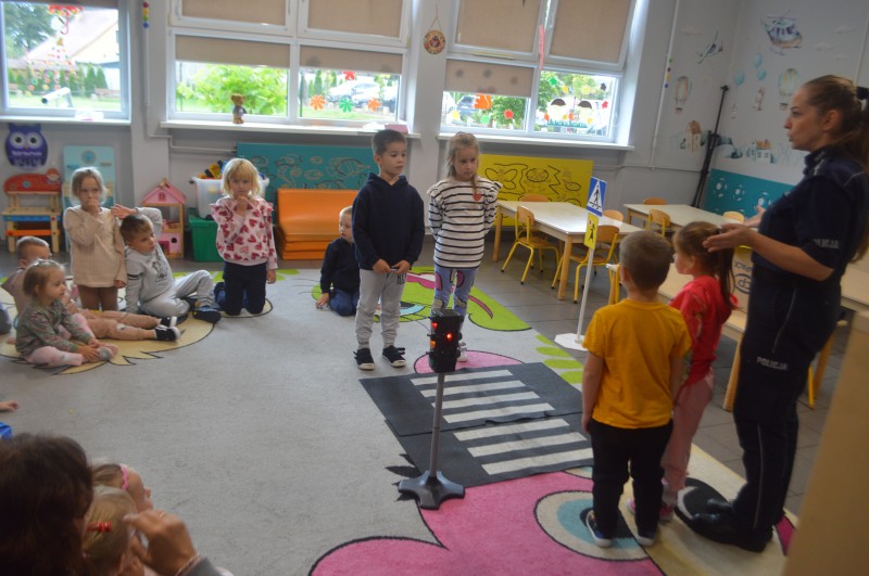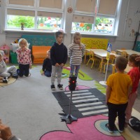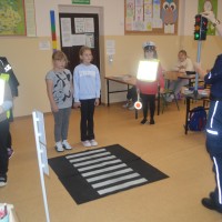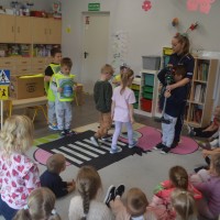 • zasady bezpiecznego przechodzenia przez jezdnię – omówiono m.in. znaczenie sygnalizacji świetlnej, pasów dla pieszych i konieczność zachowania ostrożności,