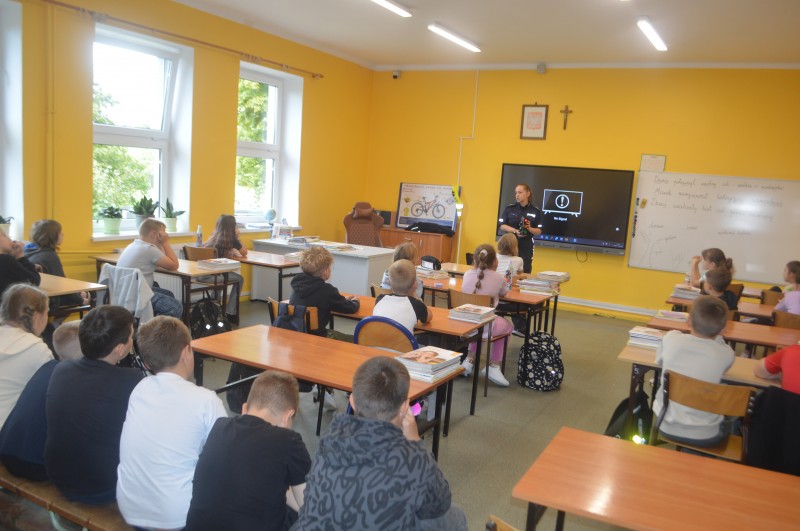 W dniu 17.09.2025 r. w Szkole Podstawowej w Nowym Worowie odbyły się zajęcia profilaktyczne w ramach ogólnopolskiej akcji „Bezpieczna droga do szkoły”. Spotkanie poprowadziła asp. Monika Barcicka – funkcjonariuszka Powiatowej Komendy Policji w Drawsku Pomorskim, która w przystępny i ciekawy sposób przybliżyła najmłodszym zasady bezpiecznego poruszania się po drogach.