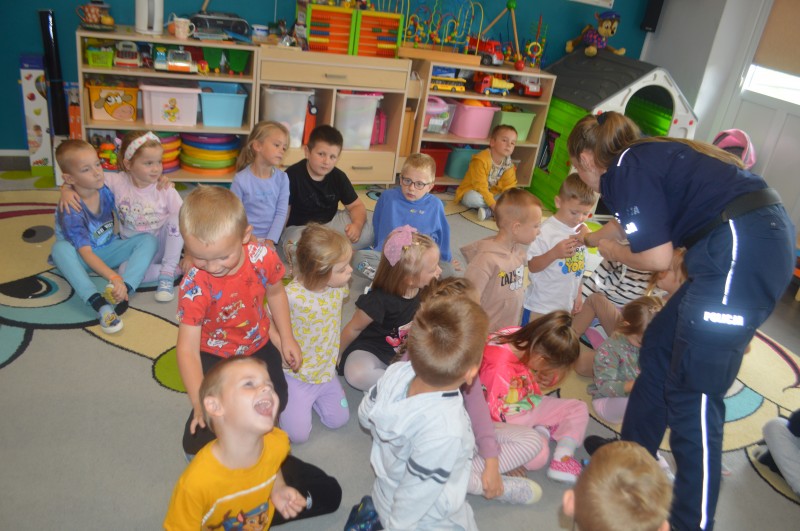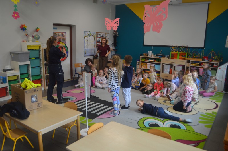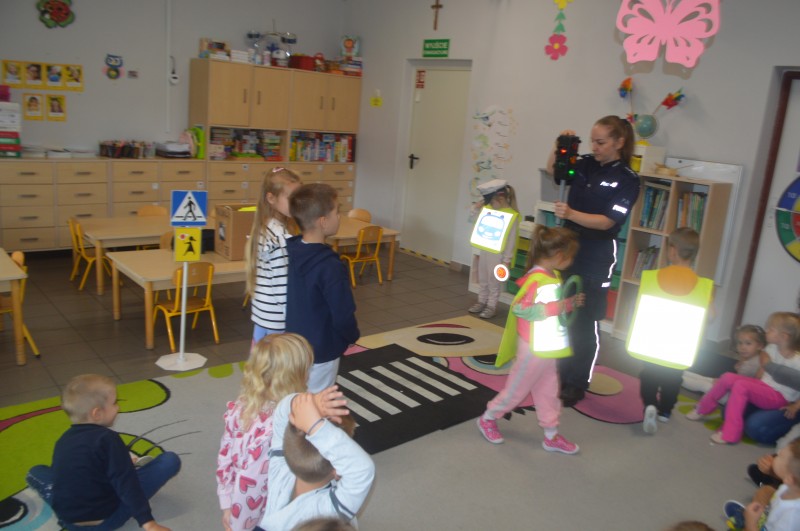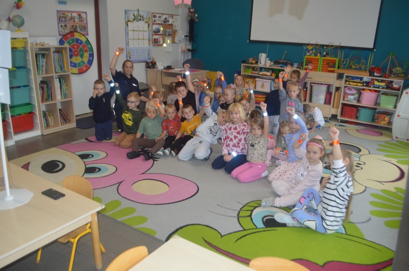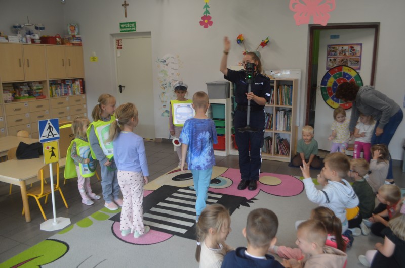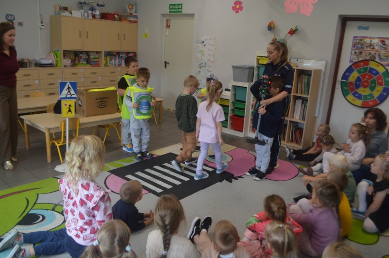 Spotkanie miało na celu zwiększenie świadomości najmłodszych uczestników ruchu drogowego oraz utrwalenie prawidłowych nawyków związanych z bezpiecznym poruszaniem się po drodze.