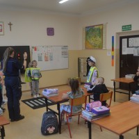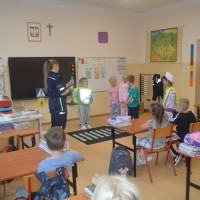 • bezpieczne zachowanie w ruchu drogowym – zwrócono uwagę na noszenie elementów odblaskowych, poruszanie się poboczem oraz właściwe zachowanie podczas oczekiwania na autobus szkolny.