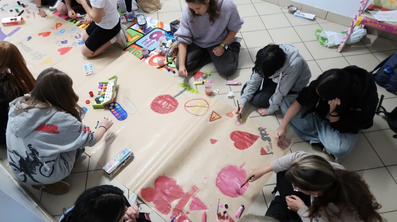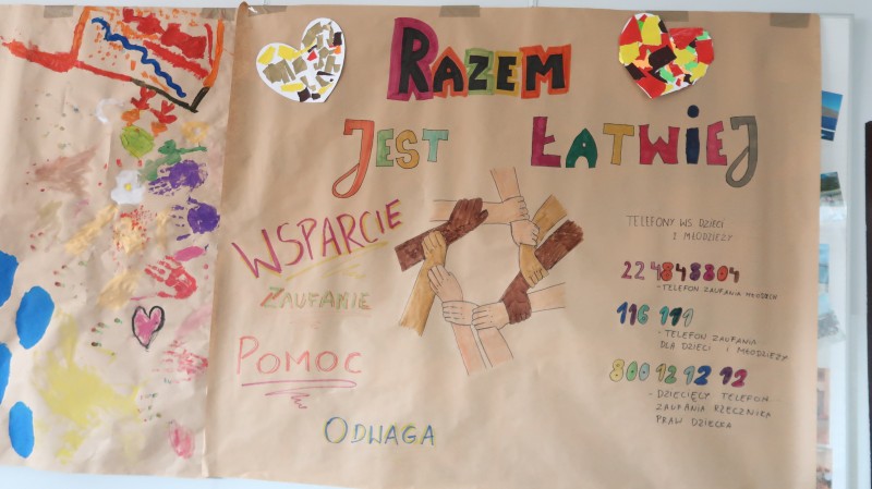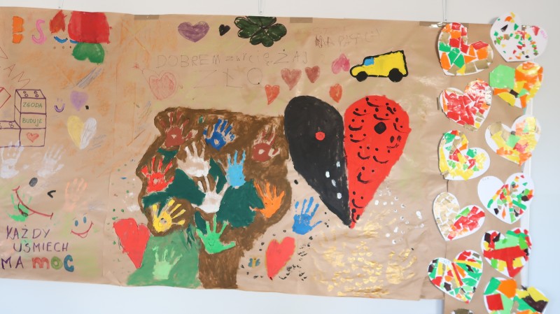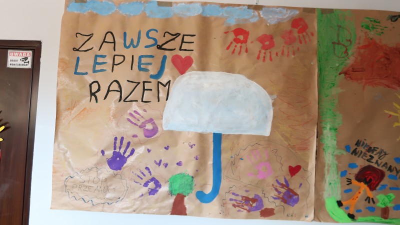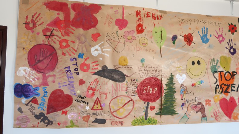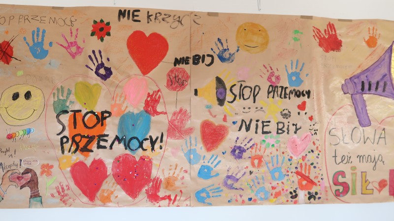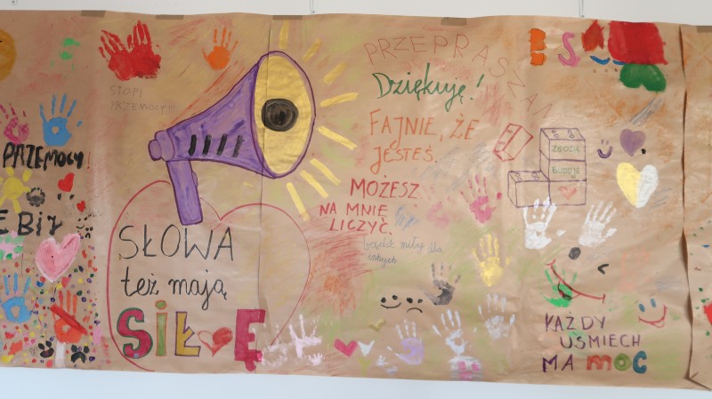 Działanie miało również silny wymiar edukacyjny i wychowawczy – uczniowie poprzez sztukę wyrażali swoje emocje i poglądy na temat przemocy oraz uczyli się dostrzegać, jak ważne jest reagowanie na krzywdę innych. Wspólne malowanie stało się okazją do rozmów na temat dobrych relacji, wzajemnej odpowiedzialności i znaczenia wsparcia w codziennym życiu szkolnym.