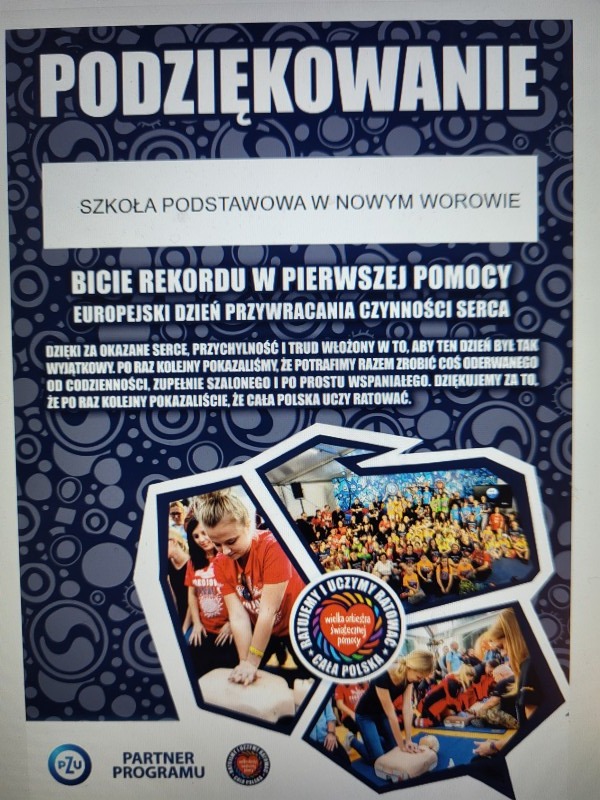 16 października uczniowie naszej szkoły wzięli udział w próbie pobicia rekordu w jednoczesnym wykonywaniu resuscytacji krążeniowo – oddechowej przez jak największą liczbę osób. Wydarzenie to zostało zorganizowane w ramach obchodów Europejskiego Dnia Przywracania Czynności Serca.