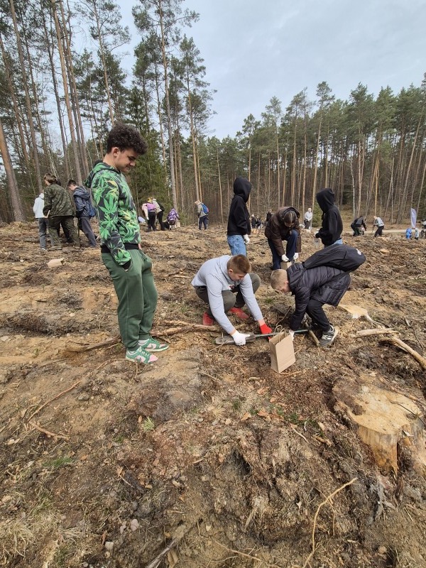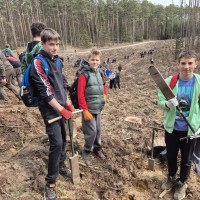W dniu 13 kwietnia 2026 roku uczniowie naszej szkoły wzięli udział w ekoakcji sadzenia drzew na terenie Pomorza Zachodniego w ramach projektu „Zielone Pomorze Zachodnie” zorganizowanej przez Urząd Marszałkowski Województwa Zachodniopomorskiego. Nasadzenia odbyły się na terenie Nadleśnictwa Czaplinek. W wydarzeniu wzięli udział wicemarszałkini Pani Anna Bańkowska, starosta drawski Pan Jacek Kozłowski, sekretarz Gminy Czaplinek Pani Marcelina Mastalisz oraz pracownicy Nadleśnictwa Czaplinek. Celem akcji było zwiększenie powierzchni terenów zielonych, poprawa jakości powietrza oraz podniesienie świadomości ekologicznej społeczeństwa. Przed przystąpieniem do pracy każdy z uczestników otrzymał instruktaż, mający zapewnić, że sadzonki przyjmą się i staną się trwałym elementem leśnego ekosystemu. Uczniowie wykazali się dużym zaangażowaniem i chętnie brali udział we wszystkich działaniach. Wielu z nich podkreślało, że udział w akcji sprawił im dużą radość i był ciekawym doświadczeniem. Atmosfera była bardzo pozytywna, a uczestnicy podkreślali, że takie inicjatywy są ważne i potrzebne.