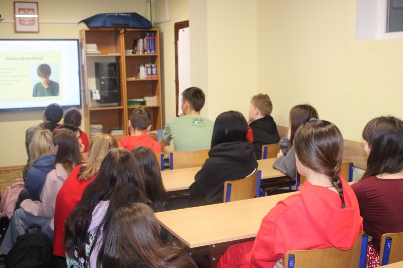 Na zakończenie zajęć Pan Marcin Kapelan podkreślił znaczenie podejmowania odpowiedzialnych decyzji, unikania ryzykownych zachowań oraz korzystania ze wsparcia dorosłych i instytucji, które pomagają młodzieży w sytuacjach trudnych.